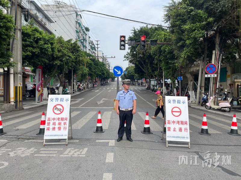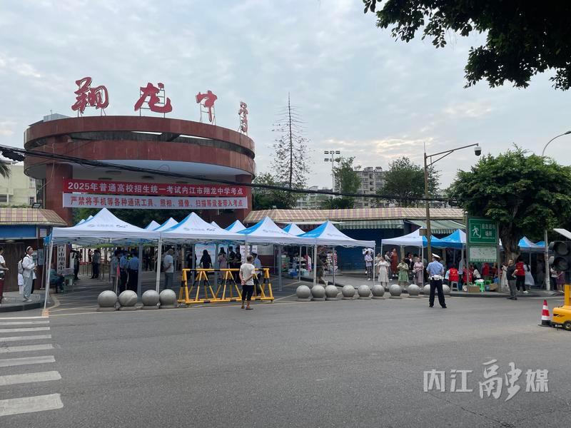 清晨7时许,内江翔龙中学考点外护航工作已全面展开。