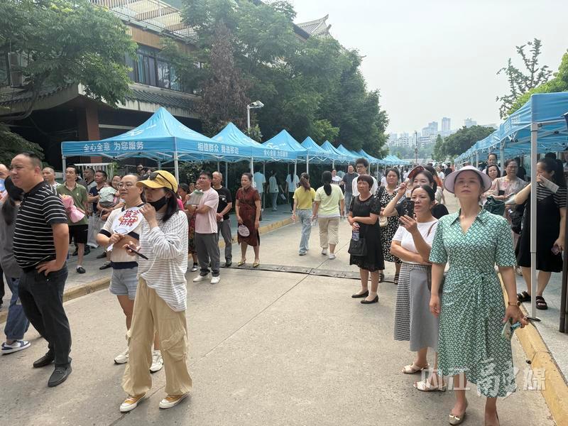 “麻烦把箱子往后再挪一挪,现场考生比较多,多让出一点位置方便考生通行。”现场负责人黄兴梅正穿梭在人群中忙碌着。当天早晨6时她就赶到现场协调调度,确保各服务台有序设置、通道畅通。