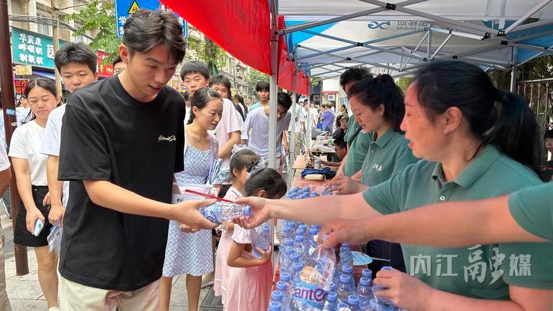上午8时,在考生们陆续抵达考点的同时,一支由全市多个企事业单位组成的志愿者队伍早已准备就绪,为奔赴考场的学子和候考家长送上贴心服务。有的志愿者忙着为考生、家长递上矿泉水、扇子等消暑物资,有的志愿者在文具补给点前细心清点整理2B铅笔、橡皮等用品,还有的志愿者在现场设置心理咨询服务台。