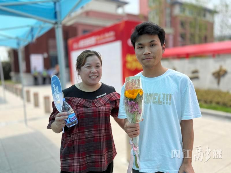 据悉,蒋晓红在深圳一家服装厂工作,一年到头只有春节才回家。儿子小周在内江求是职业技术学校就读。“孩子懂事,高考都没让我操心。但我觉得,这是他人生的重要时刻,作为母亲我必须陪在身边!”她小心整理着寓意“一举夺魁”的向日葵,眼神坚定。