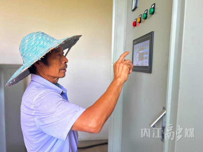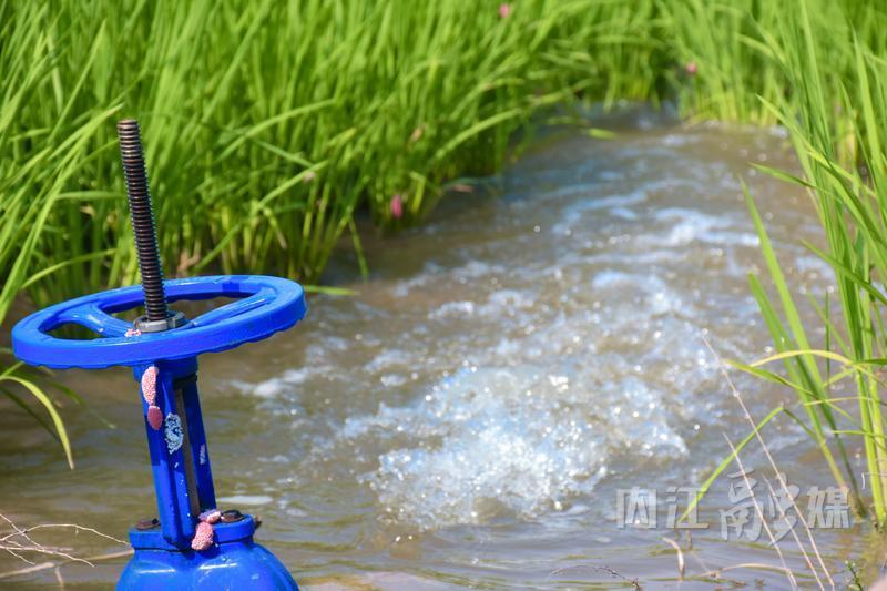 6月17日凌晨5点,东兴区田家镇粮油现代农业园区的太阳能提灌站已启动。管理员刘吉宗穿梭在提灌站、小青龙河与农田之间,忙着进行设备调试和运行情况巡查。汩汩清泉以每小时100立方米的流速穿越管道,涌入田间。尽管38℃以上的高温天气已持续多日,但此地的秧苗依旧青翠挺拔、生机盎然。