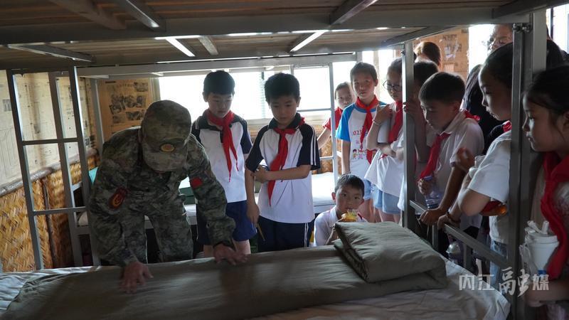 此外,师生们还走进营房生活区,学习叠被子、物品摆放等整理技巧,体会军营生活的严谨与规范。