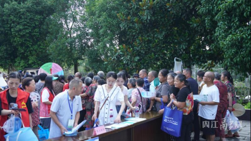 在文明集市活动环节,各行业部门结合自身职能,在院坝旁设立宣传展位,通过知识讲解、法律宣传、趣味互动等形式,普及消防知识、防诈骗技巧、移风易俗政策等内容,吸引众多群众驻足参与,每个展位前人头攒动,气氛热烈。