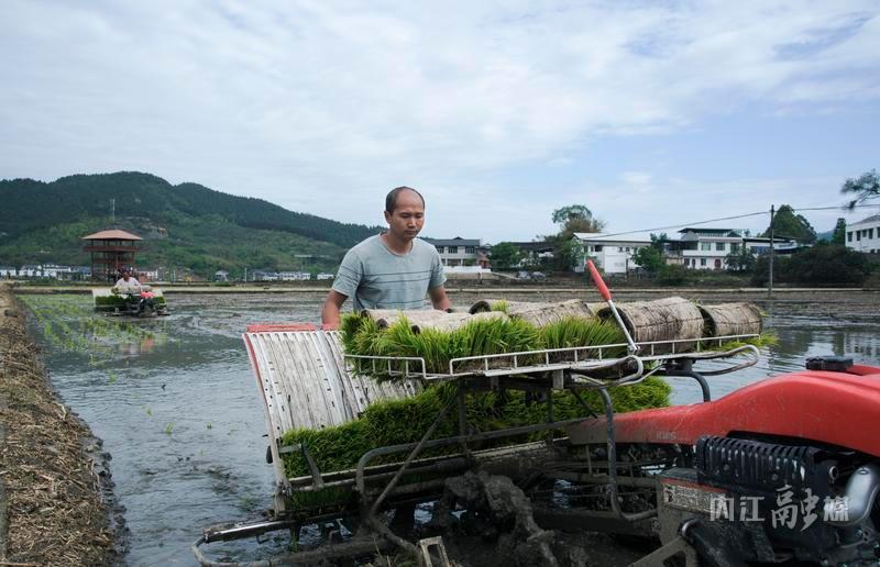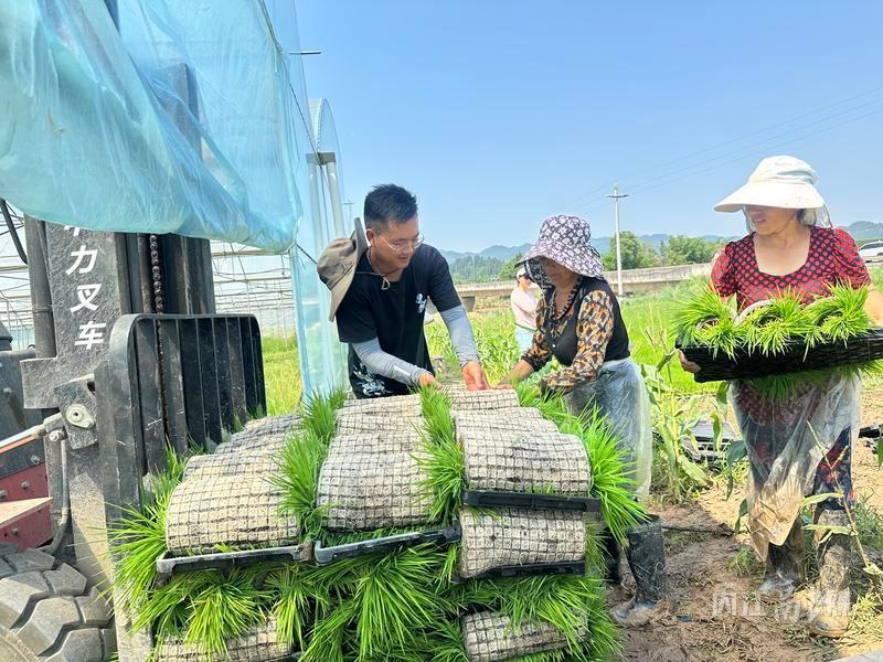 由于干旱,眼下正值秧苗栽种补种的关键时节。“卷盘的时候要及时清理杂草,避免带入稻田里,便于后期稻谷管理。”在威远县新场镇老场村,杨义昆一边麻利拔除秧苗里的杂草,一边耐心嘱咐道。随后他与工人将秧苗卷成卷状,搬运至转运车上,运往秧田进行栽种。
