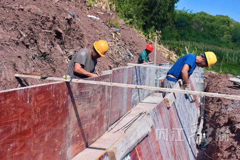 6月16日,内江发布高温橙色预警信号,在东兴区田家镇云台村5组胡家冲崩塌隐患点,10余名工人冒着酷暑开展治理工作,现场秩序井然。项目现场管理人员刘波介绍,现在该项目的边坡清理、护脚墙和基槽浇筑已完成,正在从事挡墙模板施工,力争今年6月底完工,确保周边群众生命财产安全。