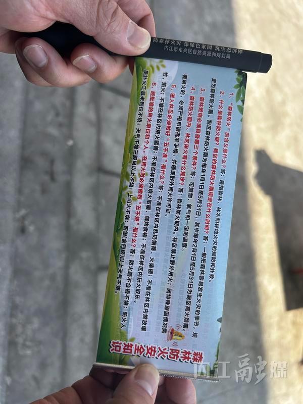 在防火宣传教育方面,东兴区充分发挥广播、标语、宣传条幅、微信公众号等平台的作用,发布森林防火公益广告、宣传标语、警示案例。截至目前,全区共发放宣传资料15.9万余份,悬挂标语749条,制作标牌2474块,入户宣传5.2万余次,出动宣传车4795次,发送宣传短信9.1万条,张贴防火令1133份,制作宣传视频3条,开展主题宣传活动6次、开学第一课60次、警示教育28次,还利用村广播宣传播放森林防火知识,通过召开院坝会等多种形式进行森林防火宣传教育,让森林防火知识深入人心。