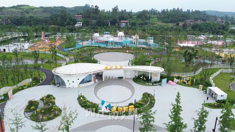 从成渝高铁资中北站出站,一个名为“鹿尔花园”的游乐园便映入眼帘。远看,里面有造型各异的游乐设施、搭配别致的绿植,以及形似杖头木偶的景观装置。