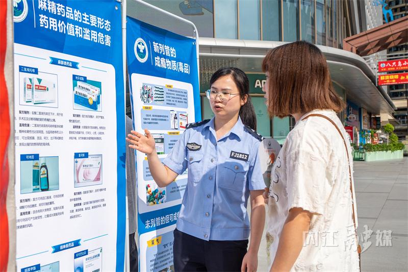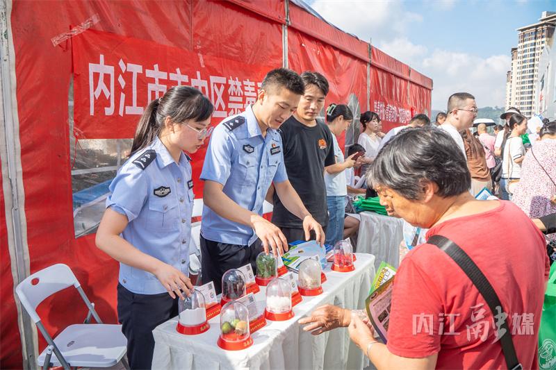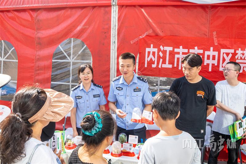 6月26日,第38个国际禁毒日,骄阳似火炙烤着甜城大地。但比烈日更炽热的,是内江市中区吾悦广场上 “禁毒护航,青春向阳” 宣传活动的热烈氛围。民警、志愿者与市民们热情高涨,丝毫未被高温阻挡。