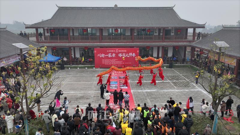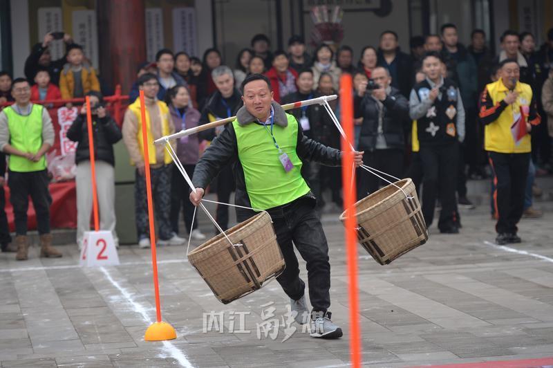 “川渝一家亲·体育大拜年”活动正在三合村热热闹闹地举行。挑箩筐运粮、赶“猪”跑、扭扁担……300余名川渝群众在充满“土味”的比赛中笑逐颜开。刘作芳关了在重庆荣昌的烧腊摊匆匆赶来,这位每天“跨省上班”的三合村媳妇笑道:“今年的年味格外浓!”
