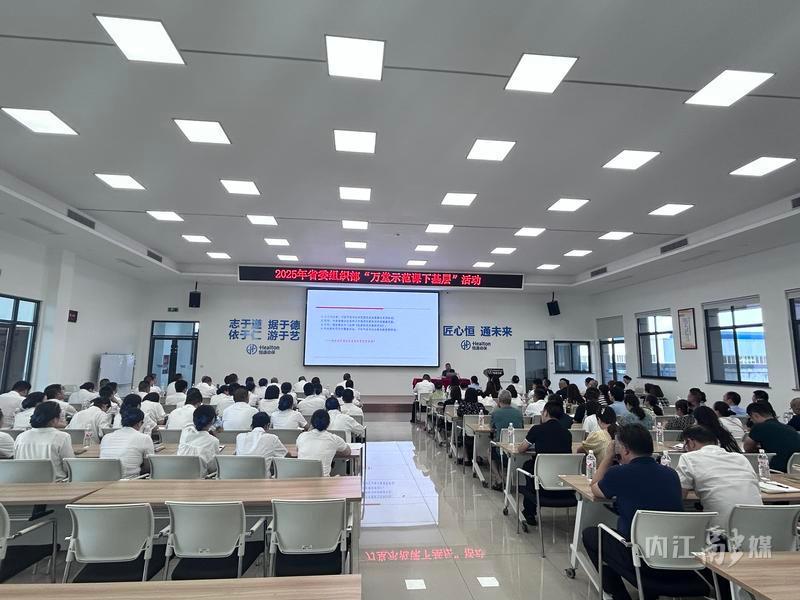 6月27日下午,2025年省委组织部“万堂示范课下基层”活动走进位于内江经开区的四川恒通动保生物科技有限公司(以下简称“恒通动保”),内江经开区党工委委员、管委会副主任黄麒颖参加。来自交通镇、靖民镇、壕子口街道村、社区以及企事业机关的100余名基层党务骨干齐聚一堂,共同聆听专题党课。
