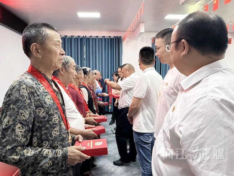 活动以“持之以恒贯彻落实中央八项规定精神”为题,结合基层工作实际,为党员干部敲响作风建设警钟。随后,9名老党员代表接过“光荣在党50年”纪念章,76岁的老党员陈友明轻抚纪念章感慨地说:“50年党龄是荣誉更是责任,看着年轻一代朝气蓬勃,我打心底里高兴!”一枚枚纪念章,既是对老党员们半个世纪初心不改、坚守的致敬,更在年轻党员心中播下传承红色基因的种子。