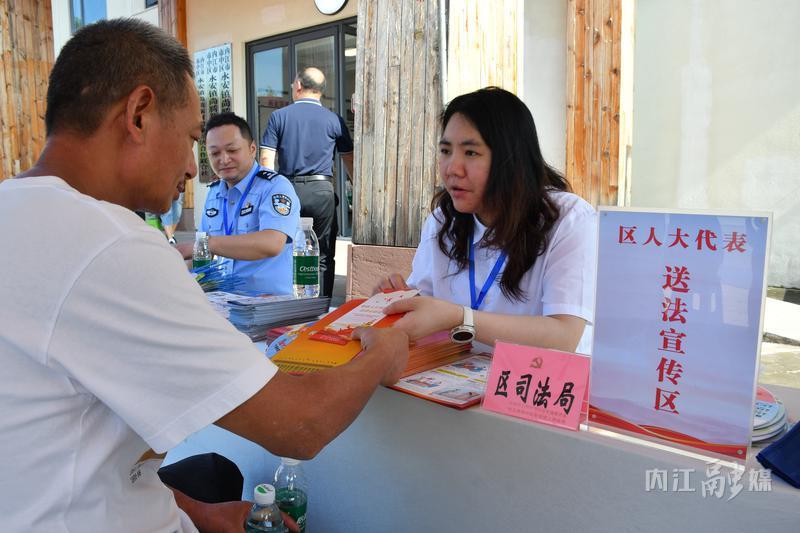 另一边,法律宣传台和咨询台前,“四官一员一律”中的警官、司法助理员、律师围绕禁毒、反诈、婚姻纠纷等方面向群众开展普法宣传,发放宣传资料和宣传品,增强群众法律意识。区人大代表、律师王东则聚焦农村高发法律盲点,为群众提供免费法律咨询服务,帮助群众知法、懂法、用法,依法依规维护自身权益。