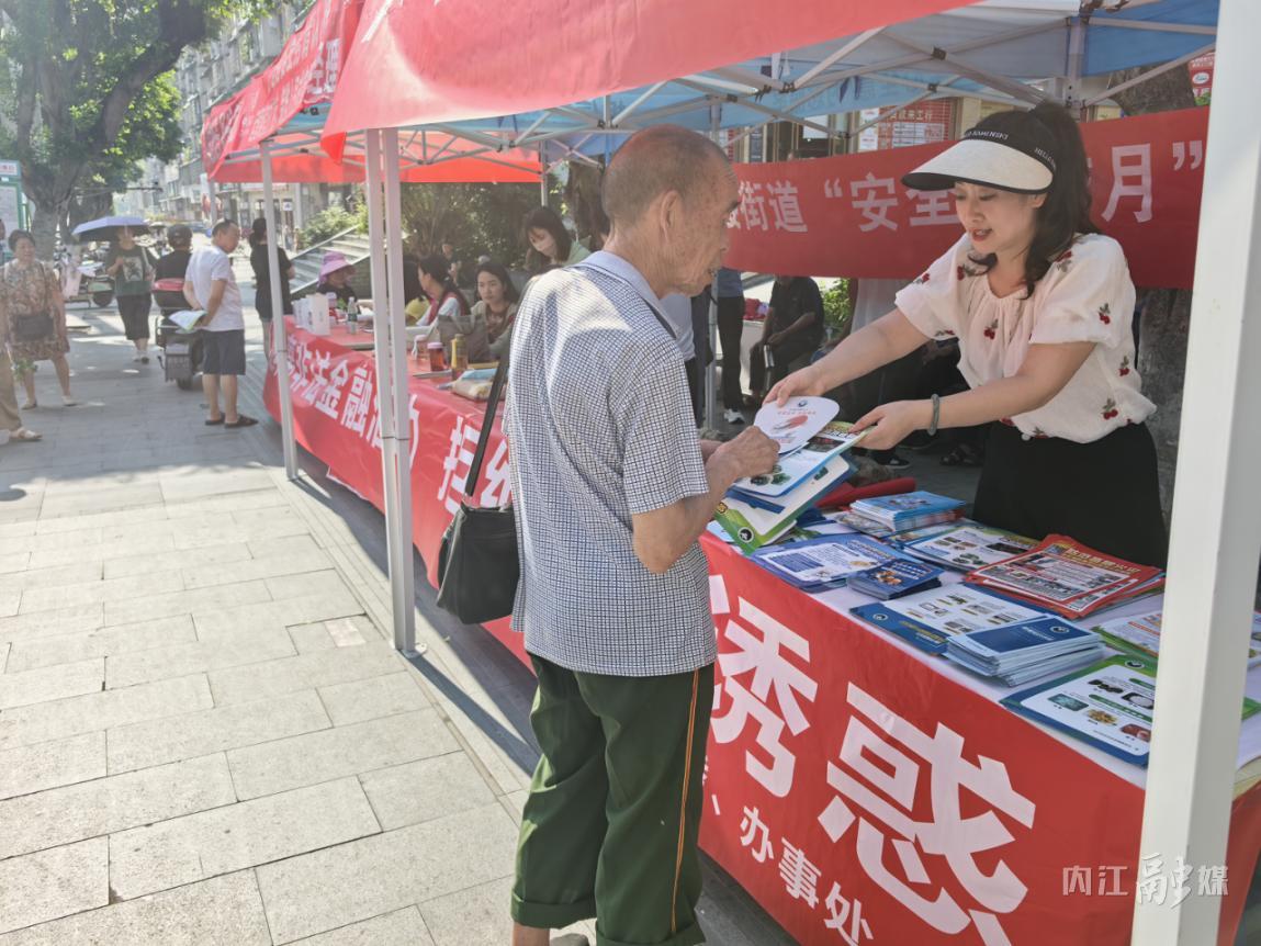 为进一步增强全民禁毒反诈意识,提高公民自觉抵御毒品和防范电信网络诈骗的能力,6月27日,内江市市中区牌楼街道在江城花园广场开展禁毒反诈宣传活动。