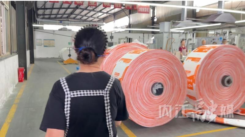 位于隆昌市的内江金方格工业有限公司生产车间内,机器轰鸣声不绝于耳。50岁的张德芬专心检查即将出厂的袋子,不放过任何一处细微瑕疵。这位工作认真细致的品检工,肢体残疾。