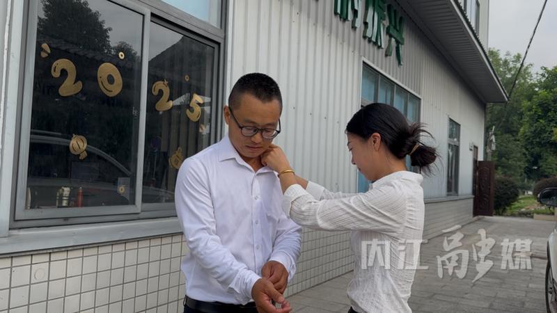 考虑到搬运果子会出汗,赵建伟特意多带了一套衣服。更换完毕,他拉着妻子看全新的“行头”,妻子一边夸赞,一边帮他整理衣服。不一会儿,他便以干练的形象亮相,眼神里增添了几分自信与从容。