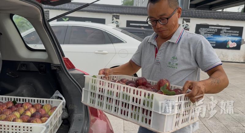 驱车抵达会场后,他仔细检查一筐筐无花果并搬至展台,按大小精心摆放,要让大家第一眼就看到新鲜的果子。