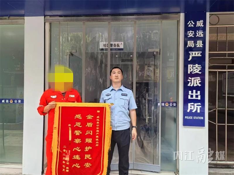 7月14日,记者从威远县公安局获悉,日前,威远县一家能源公司负责人将一面印着“金盾闪耀护民安 感恩警察心连心”的锦旗,送到办案民警周鑫手中,以此感谢民警仅用1小时便帮公司寻回遗失的贵重零件。