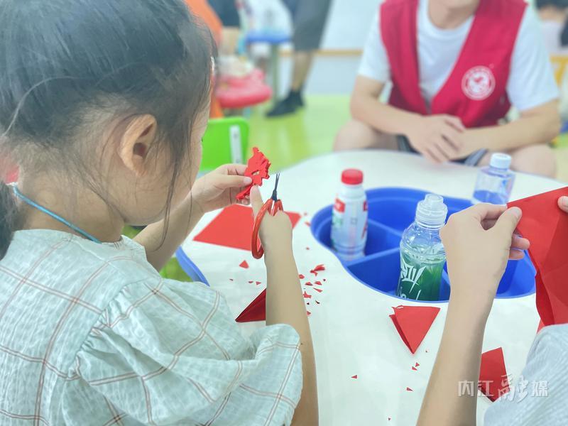 在童剪夏韵·巧手传非遗活动中,通过不同剪纸主题,由基础到进阶教学,让孩子们掌握“折、叠、裁、剪、镂”剪纸流程和技巧,感受非遗魅力。