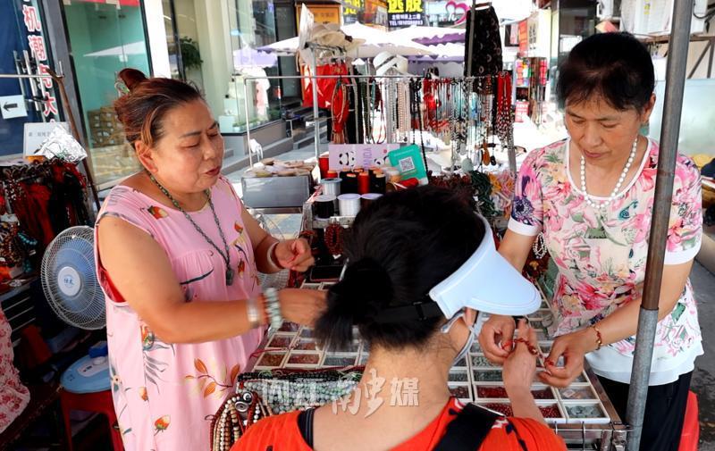 近年来,在电商冲击下,有不少街头小摊消失,但这两个手工珠串摊位却留了下来。“这么多年都坚持下来了,是真的喜欢。”尧传芳摩挲着珠子,“这些不仅是首饰,也是我们传统的老手艺。”