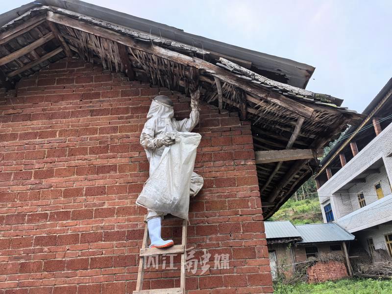 这些“惹祸”的马蜂窝藏得颇深:有的盘踞在居民楼屋檐下,有的潜伏在茂密树枝间,还有的嵌在墙角缝隙里。一旦受到惊扰,蜂群极易发起攻击,对周边群众造成威胁。