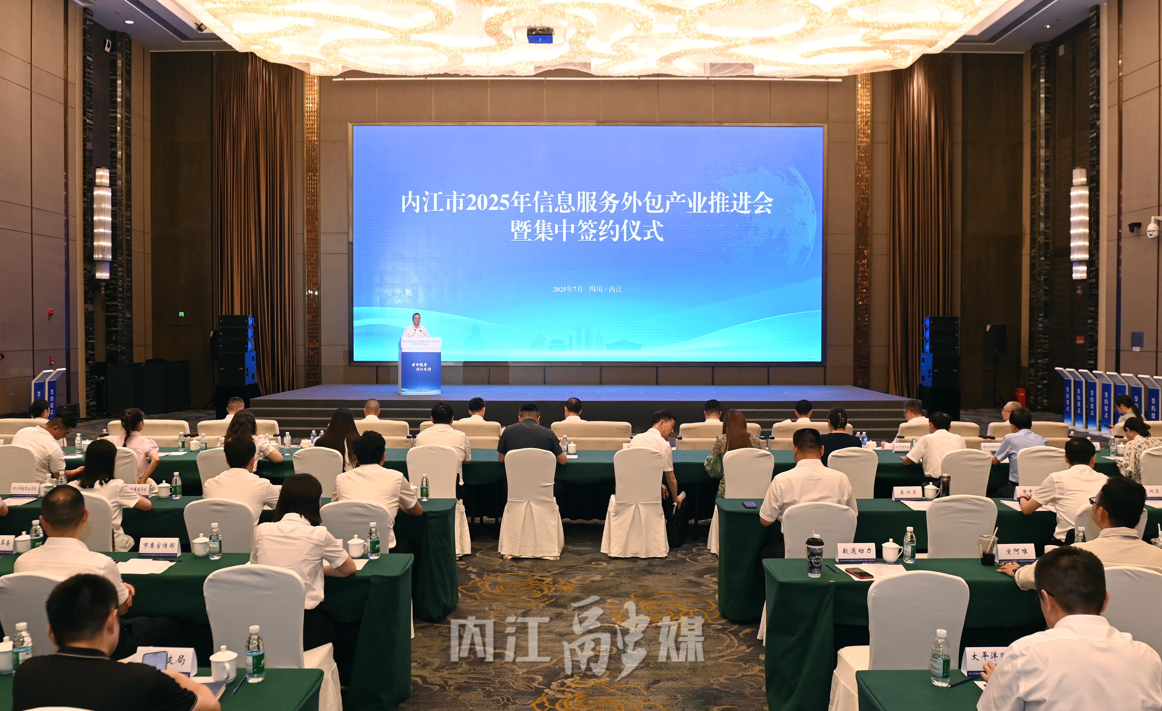 7月17日,内江市举行2025年信息服务外包产业推进会暨集中签约仪式,集中签约一批信息服务外包产业项目。市委书记邹自景出席并为获奖企业颁奖。市委副书记、市长薛学深出席并讲话。