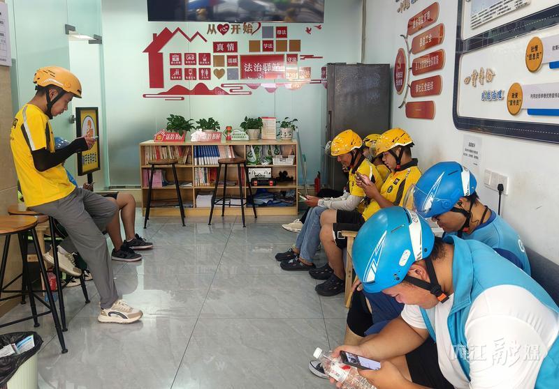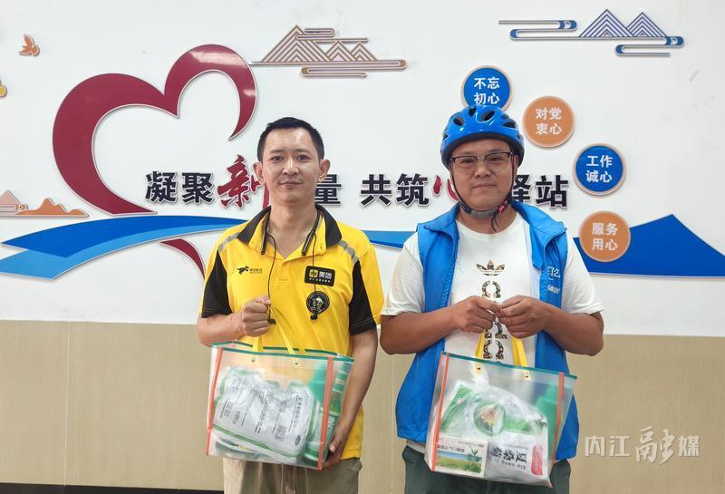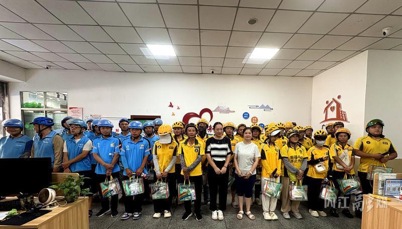 在广场街社区工会驿站,工作人员为美团、饿了么等新就业形态劳动者送上藿香正气液、花露水、板蓝根等防暑降温物品。通过实实在在的物资支持与情感关怀,有效缓解了户外工作者的高温压力,让他们“凉在身、暖在心”,进一步提升他们的职业幸福感。