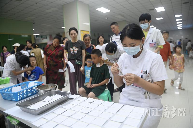 7月20日,三伏天的头伏首日,内江市中医医院与内江市东兴区中医医院同步开启三伏贴服务。从成人到儿童,不少市民专程前往医院,用传统中医“冬病夏治”的方式开启健康守护。