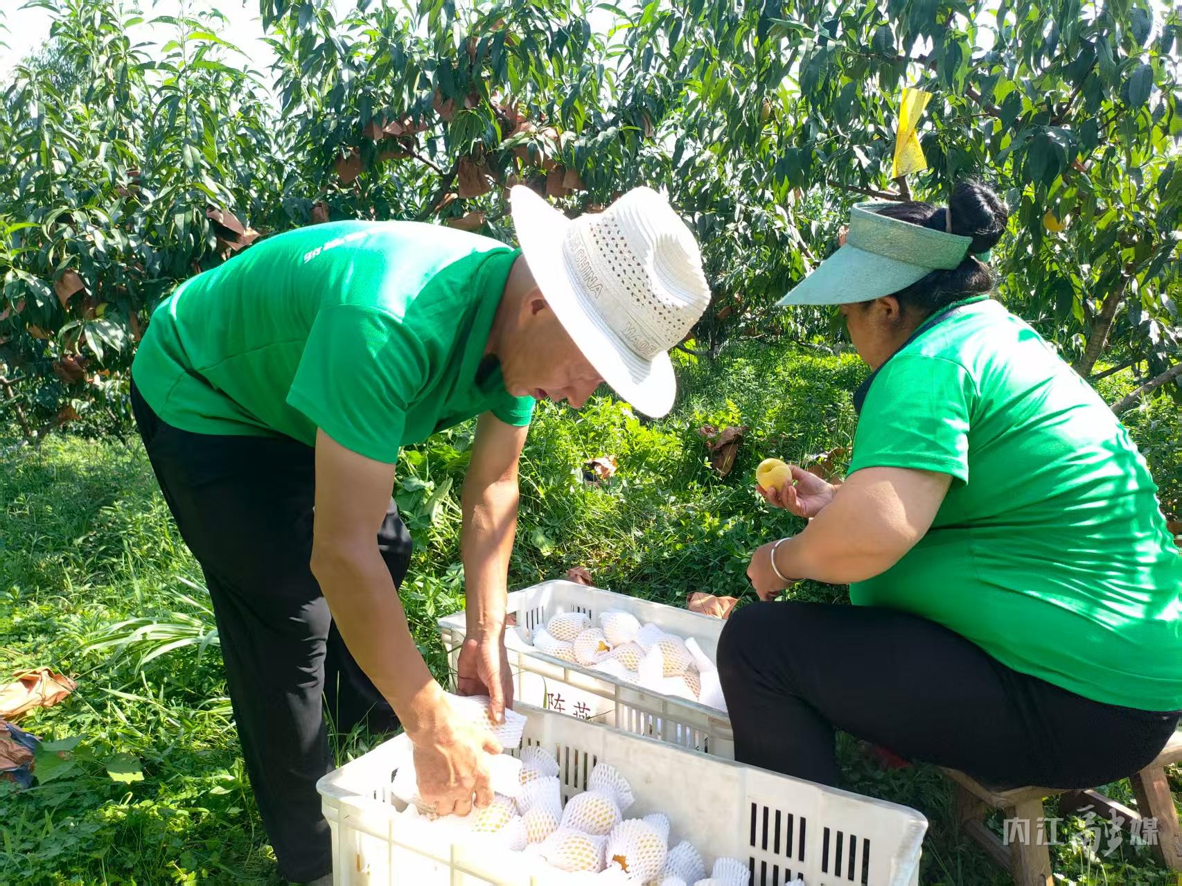金灿灿的黄桃挂满枝头,空气中弥漫着甜蜜的果香……7月17日,走进威远县新场镇龙奉村的黄桃种植基地,返乡创业的唐昌明正带领村民忙着采摘、分拣、装箱,一派热火朝天的劳动景象。
