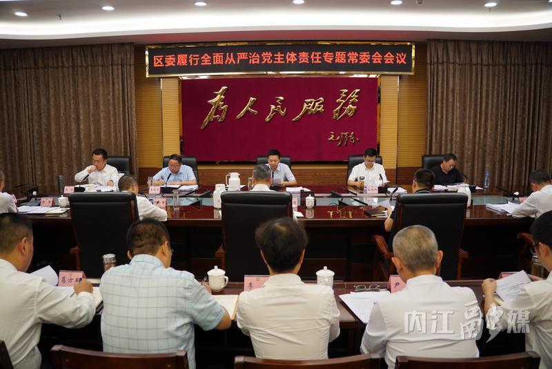 会议传达学习习近平总书记在中共中央政治局第二十一次集体学习时的重要讲话精神,听取区委常委班子及成员,区人大常委会、区政府、区政协、区法院、区检察院党组,区经开区党工委和镇(街道)党委(党工委)2025年上半年工作情况暨履行全面从严治党主体责任情况,安排下阶段全面从严治党重点工作。