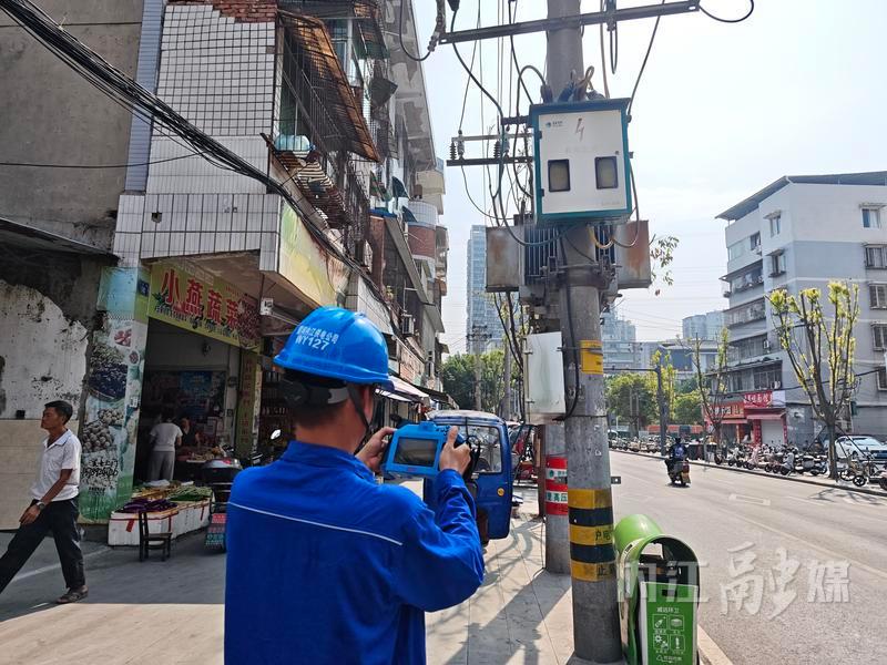 与此同时,在西山安置房小区,地表温度接近40℃。国网威远县供电公司配电运检班成员手持红外测温仪,逐一对变压器、配电箱进行“体检”。他们的额头布满汗珠,蓝色工装被汗水浸透,但手上的动作丝毫没有停顿——扫描、测温、记录,每个步骤都精准到位。