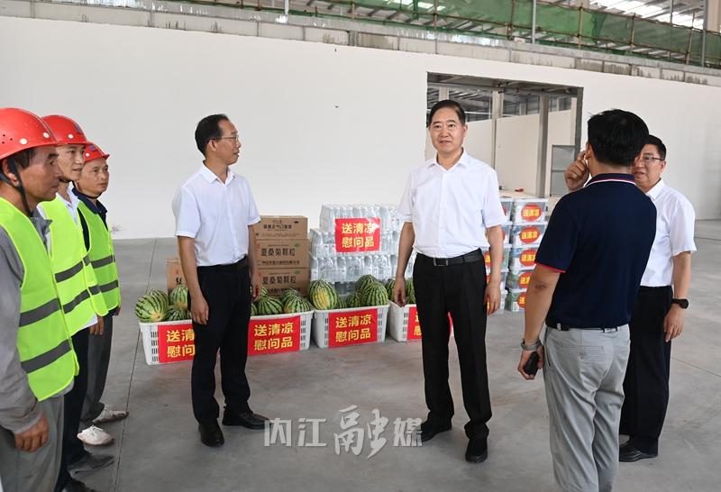 正值伏天,甜城大地处处是热火朝天的忙碌景象。内江经开区新材料产业园标准厂房项目、央普生物年产60万吨全智能化乳制品及果蔬饮料产业园项目现场,施工人员正头顶烈日抢工期。邹自景看工地、进车间,与工人代表、项目和企业负责人交谈,关切询问工人数量、工作时间、休息场所等情况,详细了解企业生产经营和项目建设进展,感谢大家为内江发展所作出的积极贡献。