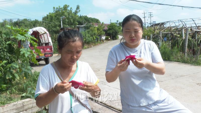 果子熟了,不光农场主高兴,也吸引了不少游客前来采摘。游客钟秀丽提着一篮子刚摘的火龙果,满意地说:“听说这儿的火龙果熟了,我赶紧就来了。他们家的果子皮薄肉厚,是自然成熟的,吃起来清甜爽口,跟街上买的就是不一样。我每年这时候都来买点,给家里人和朋友尝尝。”
