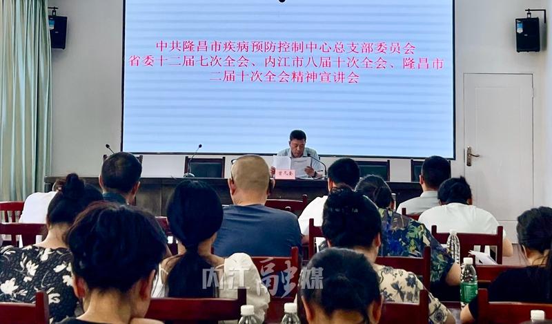 7月31日,隆昌市疾病预防控制中心党总支召开四川省委十二届七次全会、内江市委八届十次全会和隆昌市委二届十次全会精神宣讲会暨换届选举党员大会,中心全体党员参会。