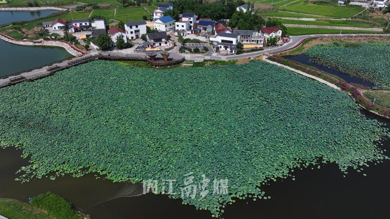 盛夏的三合村,藏着一年中最动人的景致。近处荷塘里,粉红色的新荷竞相绽放,娇嫩花瓣在骄阳下透着莹润光泽,大片碧绿荷叶挨挨挤挤,风过处,翻涌如绿色波浪,偶有蜻蜓立在尖尖荷角,更添生机。
