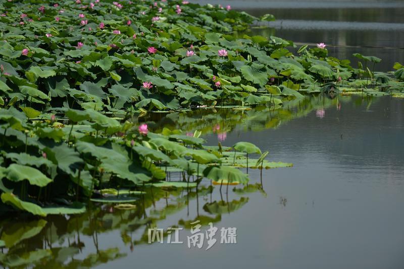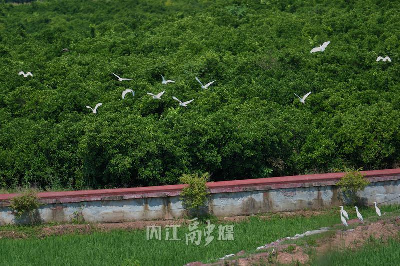 田田荷叶、低垂稻浪、展翅白鹭交相辉映,与山头上的“成渝现代高效特色农业内荣合作园区”“琪金双昌智慧猪场”两行大字相映,共同勾勒出一幅浓墨重彩的田野画卷,每一片叶、每一株穗都透着丰收的喜悦。