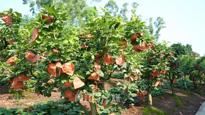 近日,走进白阳村梨园,郁郁葱葱的梨树下,金黄圆润的果实缀满枝头,阳光洒在果皮上泛着诱人光泽,空气中弥漫着清甜果香。这些黄金梨采用三层套袋技术种植,成熟后果皮浅黄,果肉细腻无渣,因汁水丰盈、口感清甜,含糖量达14.5%以上,被誉为“天然矿泉水”。