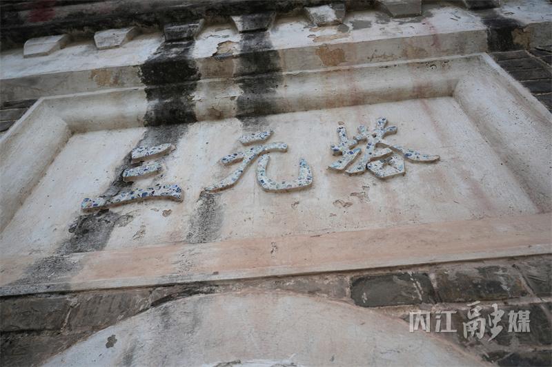 三元塔是资中重要的历史人文古迹,建于清代嘉庆年间,塔门“三元塔”三字由碎瓷片镶嵌而成,设计独具匠心。塔内设有59级砖阶,四面开设窗洞,便于游人欣赏周边自然景观。塔身有十余块青砖刻着“联捷三元”文字,相传清末状元骆成骧青年时常登临塔顶读书学习,欣赏古渡风光,还曾赋诗赞誉这里的美景。一次,骆成骧与一群学子在塔前寻找刻有“联捷三元”的青砖,竟一口气找到9块,后来他果然连中三元(解元、会元、状元)。中状元后,其父亲骆文廷在对岸修建苍颉塔与之呼应,以此彰显资中人杰地灵、文风鼎盛的地域特质。