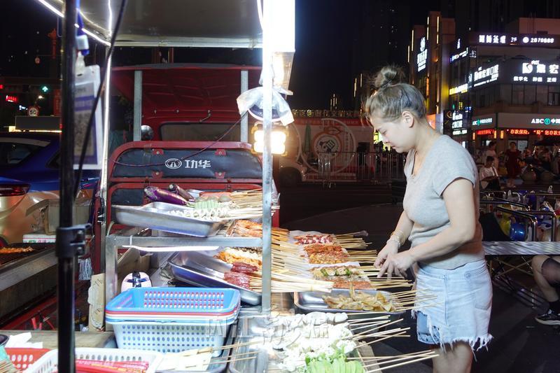 “马上烤!幺弟稍坐一哈!”张丽亮着嗓子一边招呼刚围拢的客人,一边手上麻利收拾桌子。旁边,杨梅抿着嘴没说话,双手迅速地翻着烤串,油星子滋滋作响。