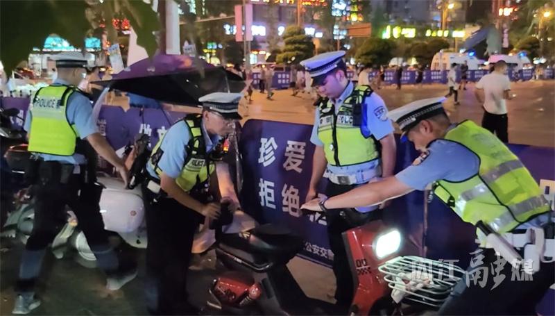 栖霞路紧邻万达广场,日常人流量、车流量大。该路段两三轮车停车秩序的规范,得益于近期内江市公安局交通管理支队开启的“亥时警务”——每天21时至23时,辖区交管大队民(辅)警都会在该区域集中规范两三轮车的停车秩序,确保夜间万达广场周边道路交通顺畅。