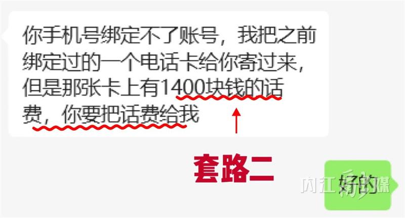 据内江公安反诈民警介绍,王某与“卖家”谈好交易流程后,先通过平台支付了300元定金,随后按对方要求用支付宝扫码支付了4700元尾款。可就在他等待对方提供账号密码时,不法分子又设下第二个圈套——声称王某的手机号“无法绑定游戏账号”,需为其邮寄一张可绑定的电话卡,方便登录领取皮肤。对方还说,这张电话卡存有1400元话费,需要王某先把这笔话费“还”给“卖家”。