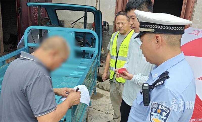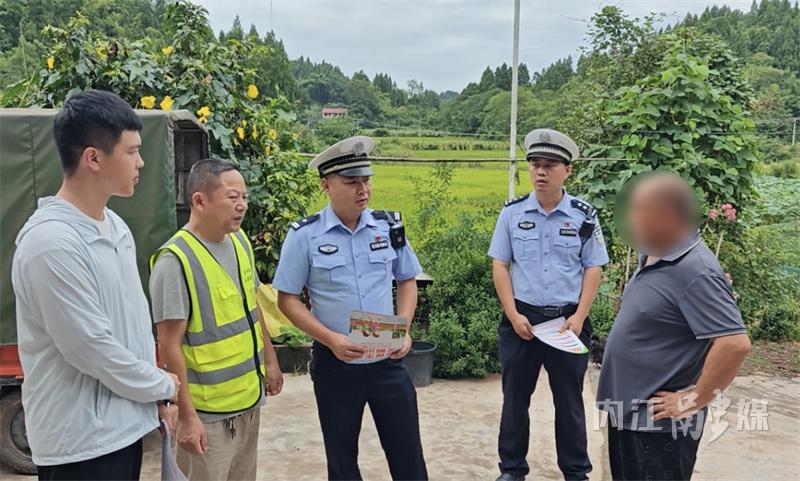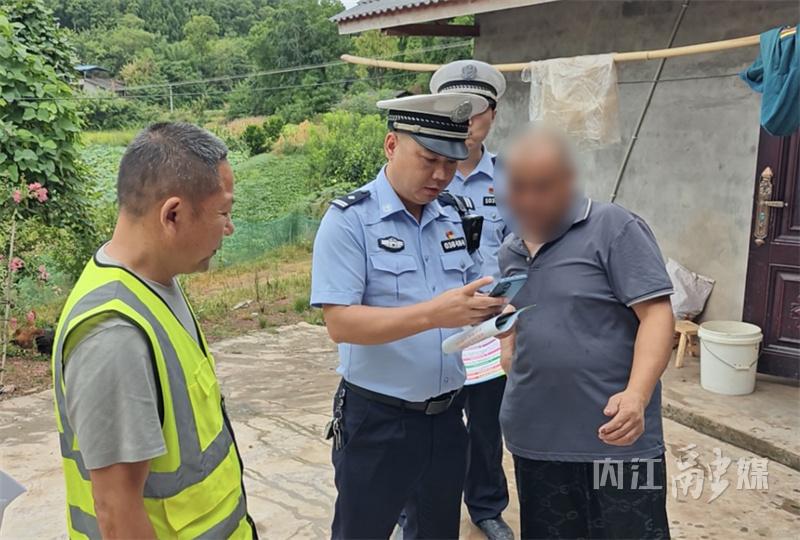 “这是电子劝导系统抓拍到你几天前驾驶三轮摩托车在村上出现的交通违法行为:第一,未佩戴安全头盔;第二,违法载人。”日前,内江市公安局交通管理支队直属二大队民警联合石子镇道安办工作人员、太和村村干部,来到村民孙某某(化名)家中,就其交通违法行为开展宣传教育。