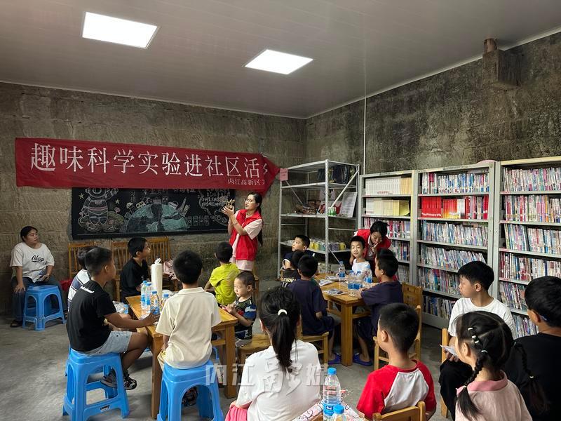 8月25日上午9点30分,内江高新区高桥街道谢冲村“儿童之家”热闹非凡,一场趣味十足的“趣味科学实验进社区”的科普小课堂在此开课。