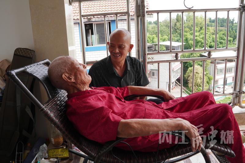 102岁的宋国良,老伴已经离世多年,还有三个子女轮流陪伴在身边。接受记者采访后,他在大儿子的搀扶下缓慢地走向阳台,在椅子上躺着。宋伯树说,父亲最爱在这里看风景、逗小猫。