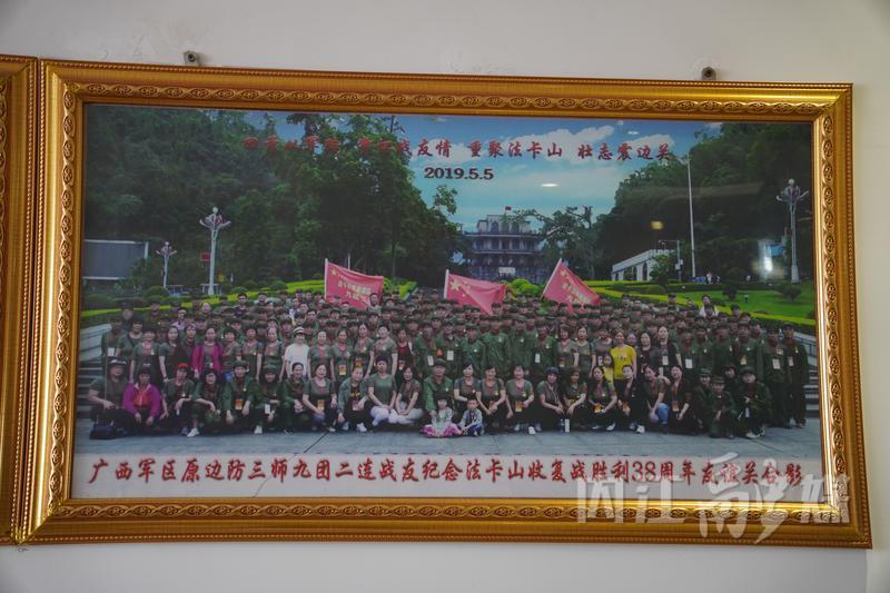 家中墙上悬挂的纪念法卡山收复战胜利38周年合影,彰显了宋伯树在部队的荣光。