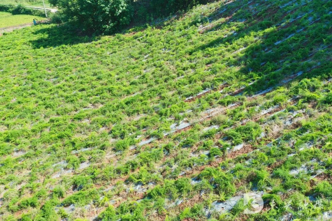 8月27日,记者走进平坦镇十里村、顺河镇白云村的天冬种植基地看到,连片的天冬苗郁郁葱葱,与套种的玉米、大豆相映成趣,长势格外喜人;工人们穿梭田间,有条不紊地开展除草、松土等日常管护作业,用忙碌的身影守护着丰收的希望。