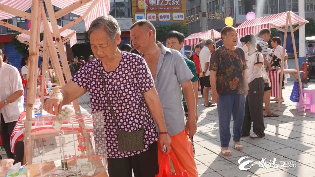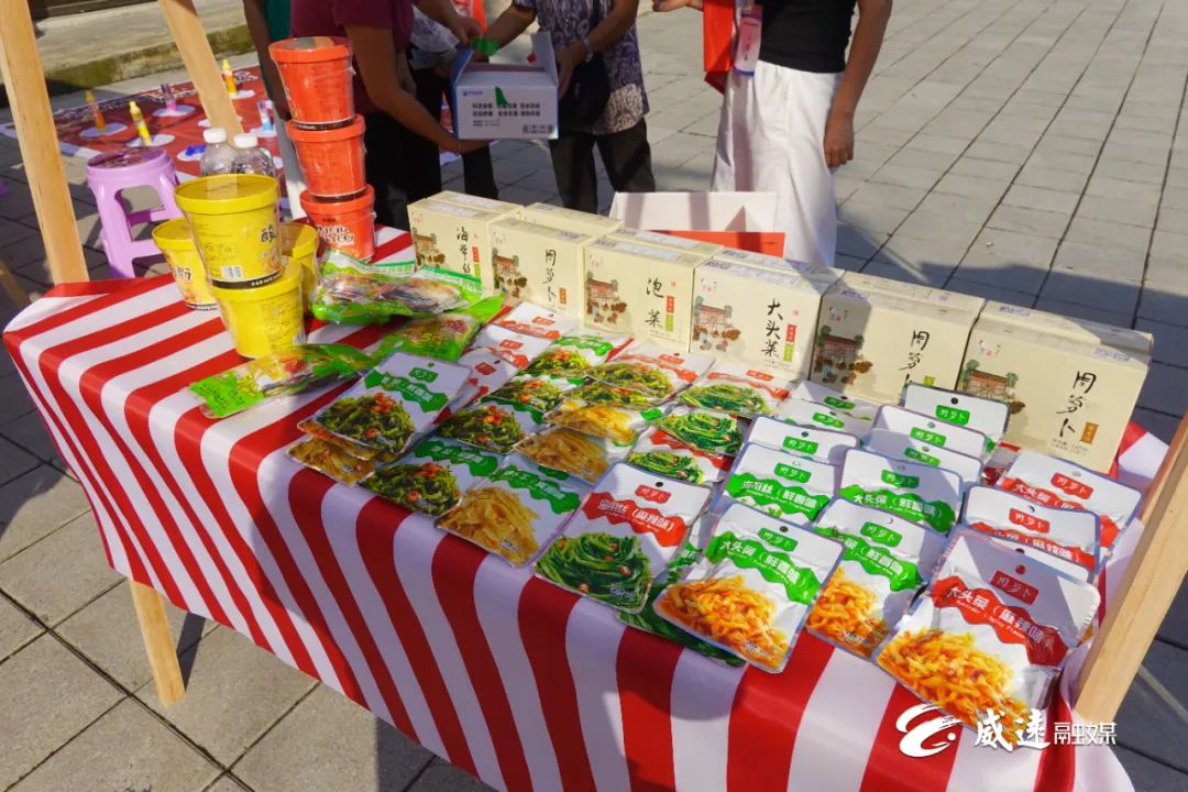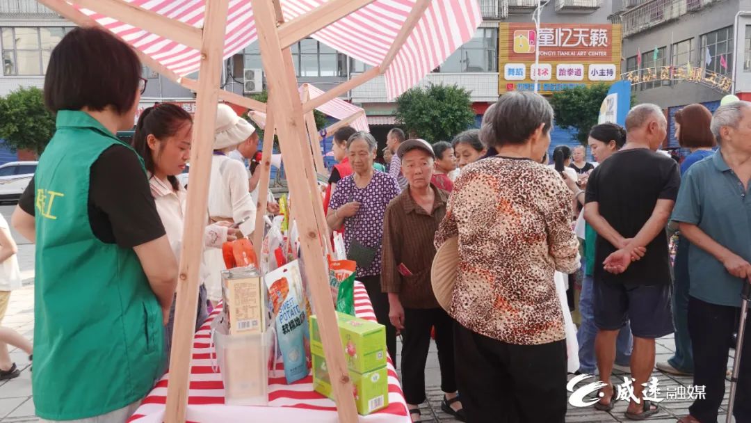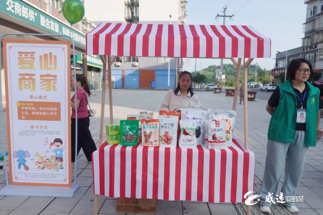 该区域汇聚了金四方、黄老五、威宝等多家威远本土特色企业,熟悉的家乡品牌让居民倍感亲切。商家们不仅带来自家招牌特色商品,还专门推出专属公益福利,让居民在选购“家乡味”的同时,也能为公益出份力。