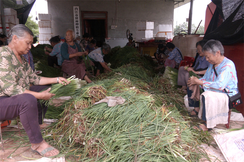 眼下,内江市东兴区白合镇报恩寺村的100亩露天韭菜迎来丰收,翠绿的韭菜田与田间忙碌的身影交相辉映,勾勒出一幅生机勃勃的乡村丰收画卷。