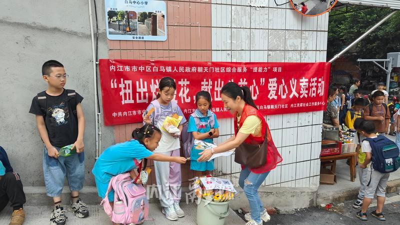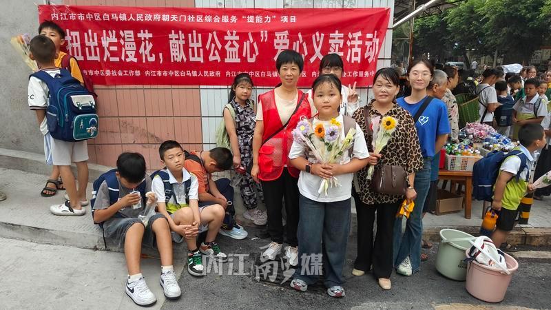 “这手工向日葵是社区阿姨们做的,买一朵送给老师,还能帮社区做公益!”9月9日至10日,市中区白马镇中心小学校外格外热闹,一场以“扭出烂漫花 献出公益心”为主题的慈善义卖活动在这里开展,吸引不少学生和家长驻足。