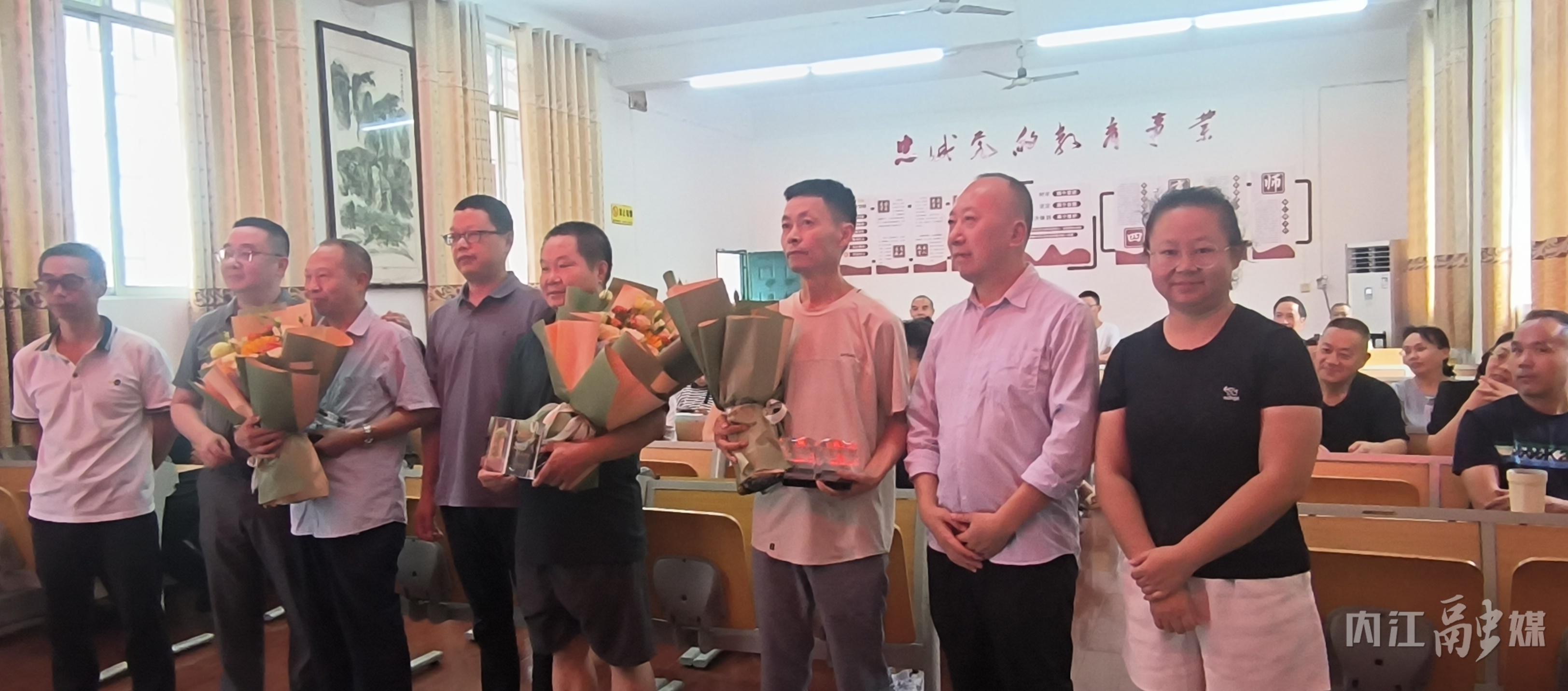 最令人动容的环节,当属“玉锦谢师奖”颁奖与教师荣休仪式。在热烈的掌声中,获奖教师依次登台,接过荣誉证书与奖励,这份来自校友的认可,既是对他们教学成果的肯定,更是对教育初心的致敬。而荣休教师代表则在师生的祝福中,接过学校颁发的荣休纪念章,他们虽即将告别讲台,但数十年如一日的育人情怀,早已成为隆昌十中宝贵的精神财富。
