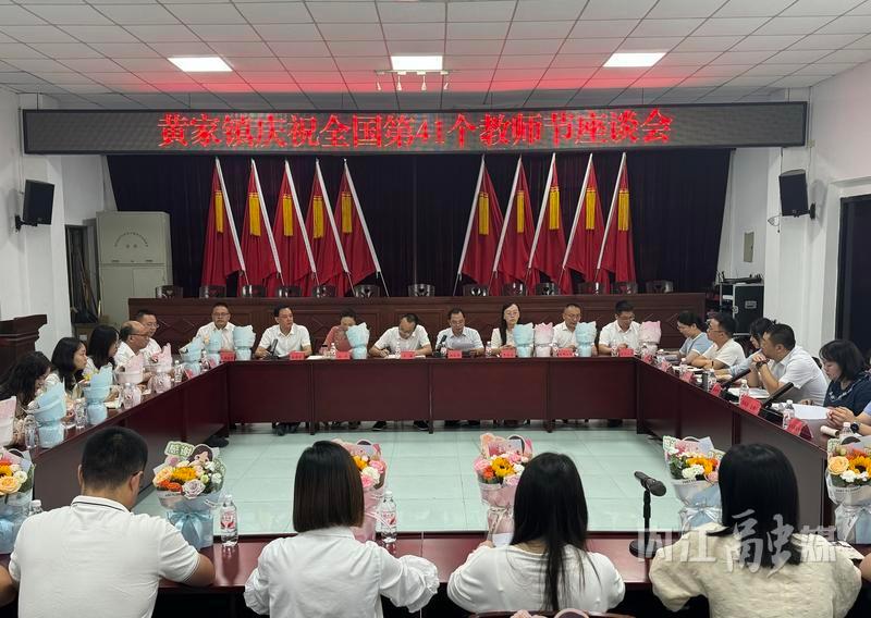9月10日,隆昌市黄家镇召开庆祝第41个教师节座谈会,与会人员围绕镇域教育事业高质量发展进行深入交流。隆昌市教体局相关领导、党组成员,市纪委监委派驻教体局纪检监察组组长,黄家镇党政班子成员,镇属各学校负责人,驻镇单位负责人及教师代表等40余人参会。